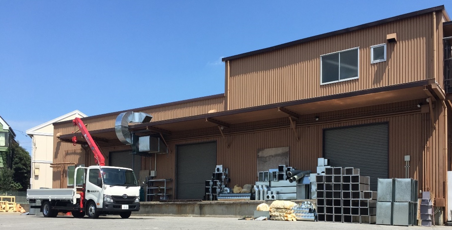 角ダクト(共板工法・フランジ工法)・制気口ボックス・チャンバーボックスなど工場にて加工・製作を行い、各現場へ搬入しています。